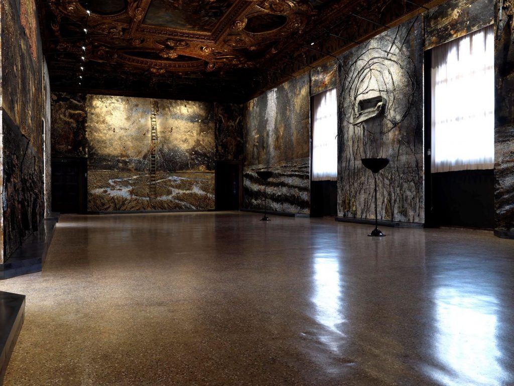Уже само место проведения выставки готовит посетителя к великолепию увиденного: “Шедевр готического искусства, Дворец дожей в Венеции, – поясняет официальный сайт, – представляет собой грандиозное наслоение конструктивных и декоративных элементов: от древних фундаментов до структуры всего здания XIV-XV веков, заметных вставок эпохи Возрождения, роскошных маньеристских вывесок”. А чтобы добраться до работ Кифера, посетитель должен пройти по пути, комната за комнатой, среди драгоценных доспехов, фресок и картин. Вплоть до Зала дельо Скрутинио, откуда открывается вид на площадь Святого Марка и где избирался дож.